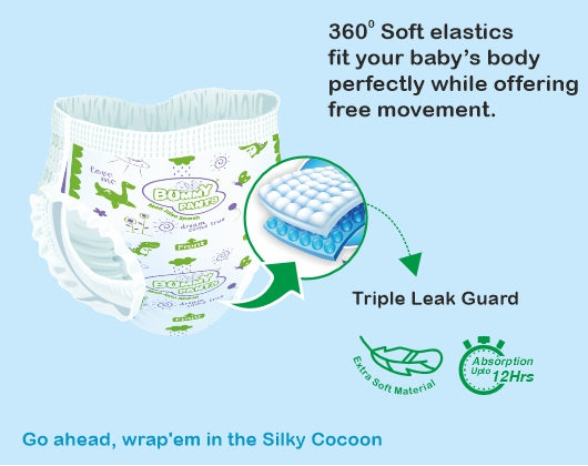 BUMMY PANTS Extra Comfort pants for babies | Leak Proof & Super soft | 12 HOURS Protection | Cotton Feel Baby Diaper Pants available in 5 different sizes in Single & Combo Packs